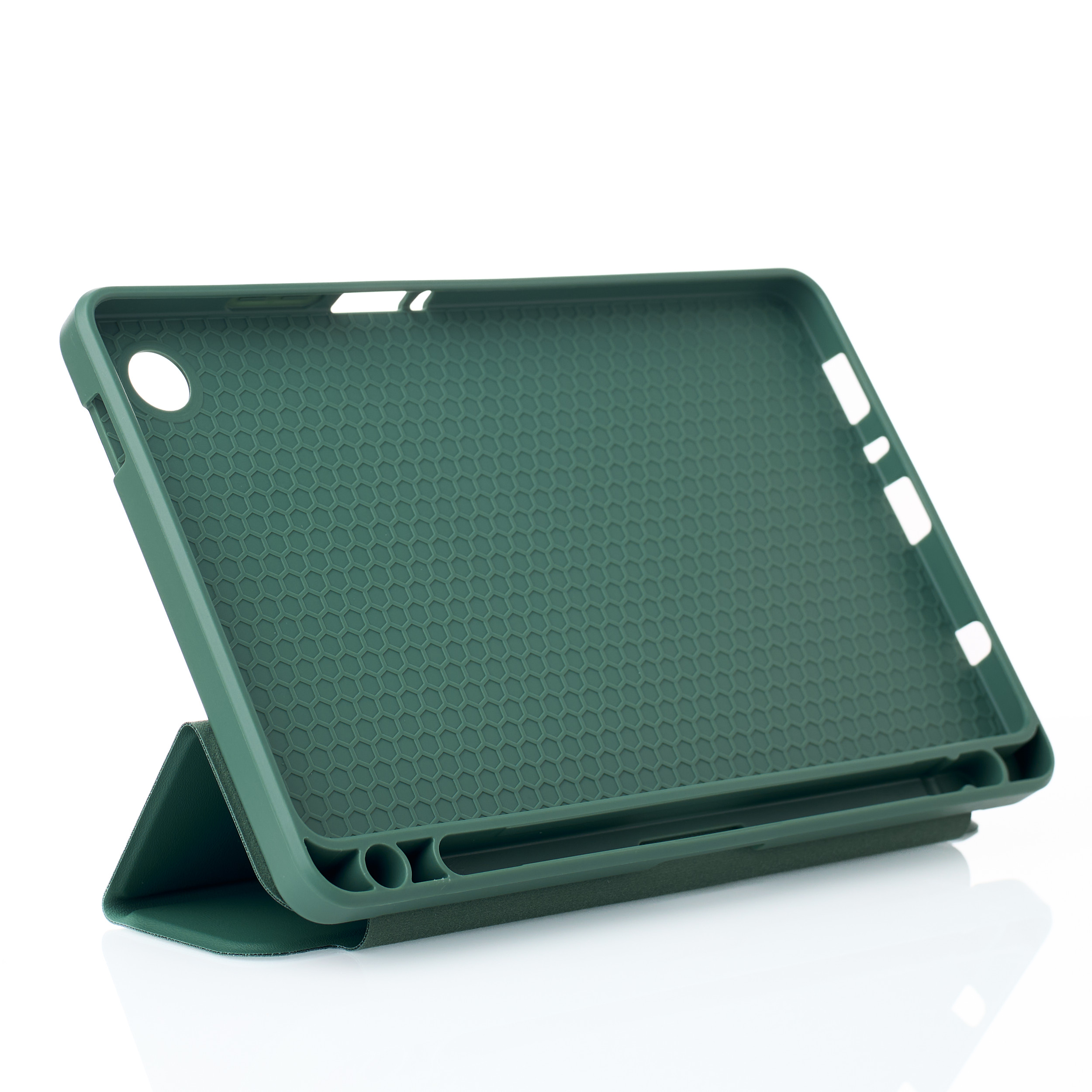 Чехол надёжно охватывает планшет со всех сторон. Изготовленный из комбинации высококачественной эко-кожи и прочного силикона, он обеспечивает оптимальное сочетание эстетики и практичности. Внешняя поверхность из эко-кожи приятна на ощупь и придаёт вашему планшету стильный вид, а силиконовый каркас надёжно фиксирует устройство и защищает его от ударов.