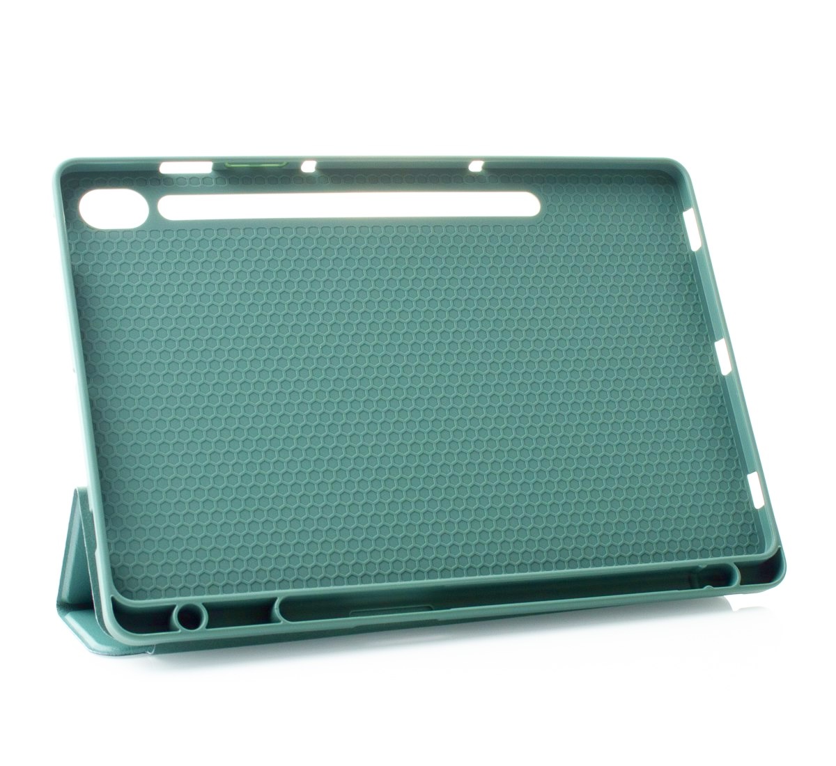 Чохол надійно охоплює планшет з усіх боків. Виготовлений з комбінації високоякісної еко-шкіри та міцного силікону, він забезпечує оптимальне поєднання естетики та практичності. Зовнішня поверхня з еко-шкіри приємна на дотик та надає вашому планшету стильного вигляду, а силіконовий каркас надійно фіксує пристрій та захищає його від ударів.